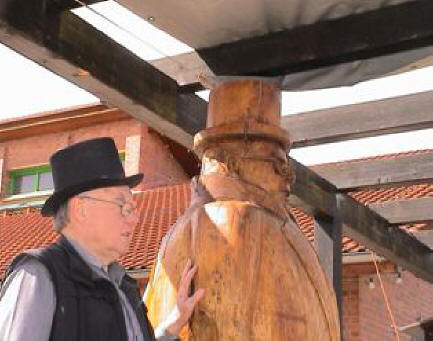 Original(HerrLux) und Kunstwerk (2,5 m hohe Klotzbeute)